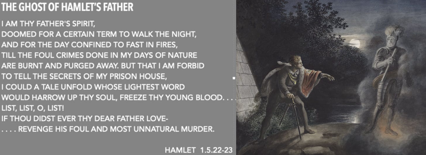 Notice the similarity to how the Ghost of Hamlet’s Father introduces himself: