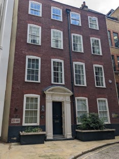 After Scrooge takes his dinner, Dickens gives us some rather intriguing details about Scrooge’s deceased partner, Jacob Marley. Scrooge, apparently, inherited Marley’s house, which is tucked into a mews in the City of London. At the time, this would have been a very expensive piece of real estate.