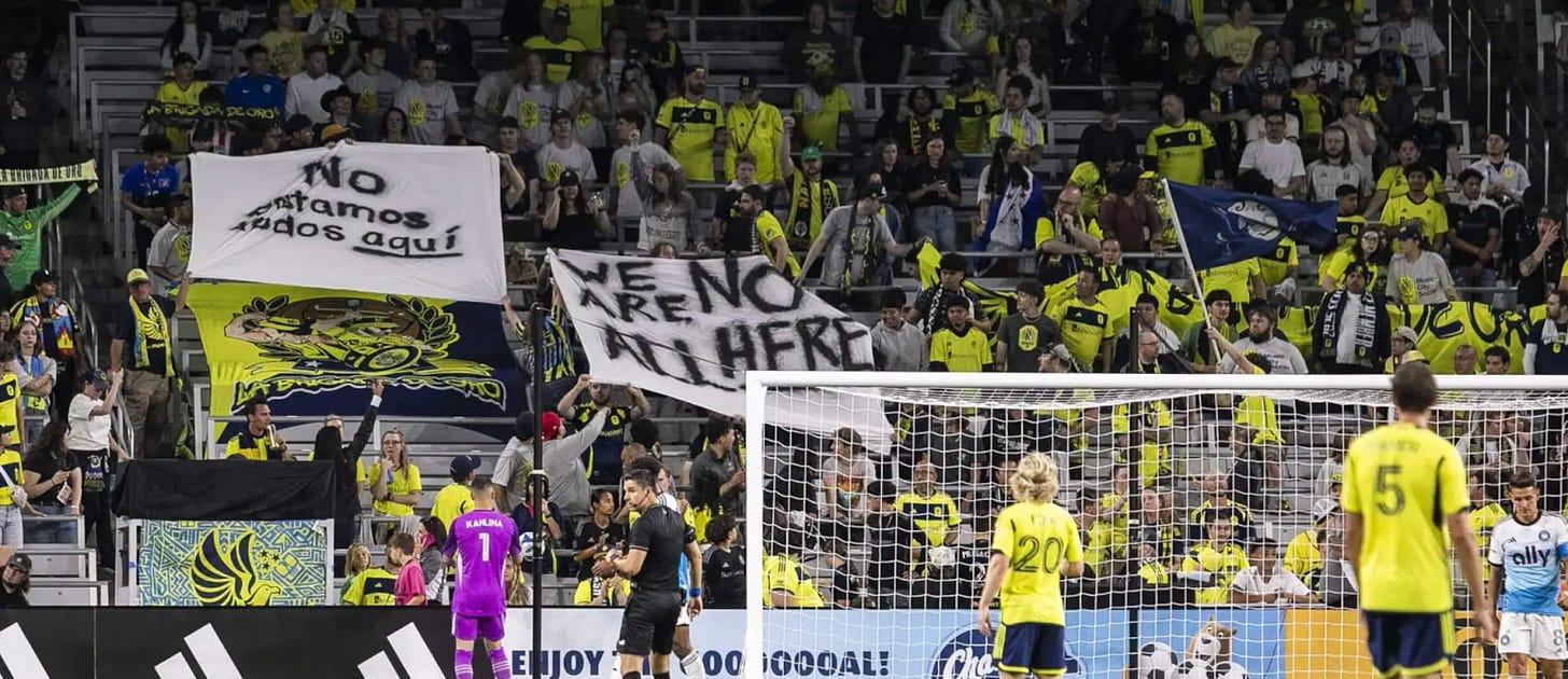 This is not a paranoid, nonsense question. Last year, we saw Mexican fans of Nashville FC, “We Are Not All Here.” after they were targeted by ICE.