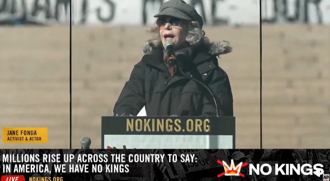 At the third No Kings rally, Jane Fonda read a statement from Becca, saying that she and Renėe stand for “radical kindness,” and in a gesture of genuinely radical kindness, Becca says that she and her wife believe that fostering radical kindness is the belief that we can admit mistakes, that we are allowed to change our minds, “that what we believed before is not what we believe anymore.” That to “change your mind is powerful and beautiful and brave.”