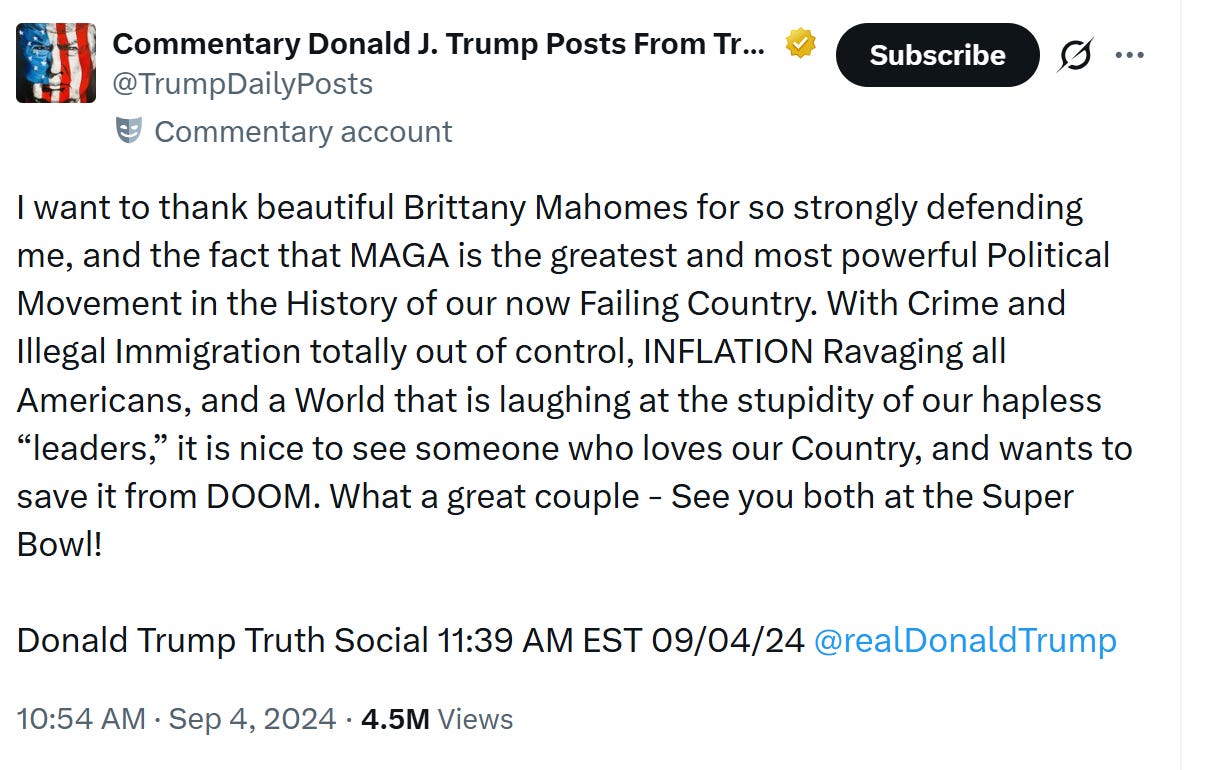 Even though the Longs and the Mahomes built and own the stadium, and we should celebrate the investment and the transformation of the Riverfront—even if one of our owners is openly MAGA and gets shout-outs from Donald Trump.