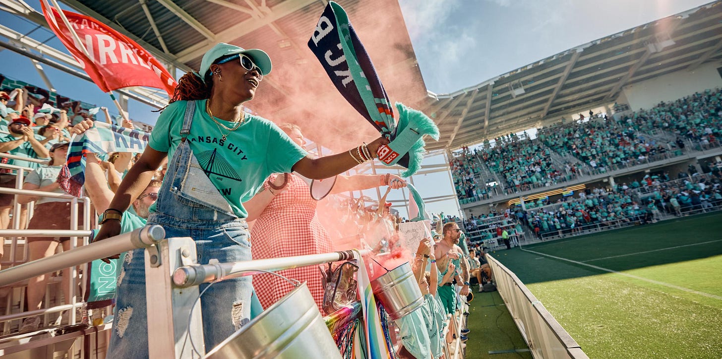 More than any American city, in Kansas City the NWSL team is visible: the streetcar, the merch, the flags, the shop on the Plaza, it’s everywhere. The Longs and Mahomes invested in a women’s team, building not only a stadium, but an entire entertainment district on the literal dumping ground for the collapsed roof of Kemper Arena from the 1970s. It prompted the city to create a rail line to the Missouri River, almost single-handedly reconnecting Kansas City to its roots as a river town.