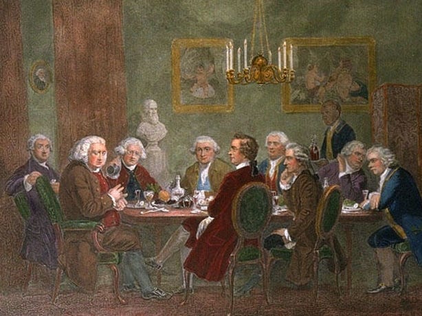 Samuel Johnson Holding Court at The Literary Club, an 18th Century Dinner Club Where Johnson and the Boys Would Discuss Important Matters of the Day. Today They Would Likely be Chelsea Supporters and Frown On Arsenal’s Reliance on Corners as Too Working Class.