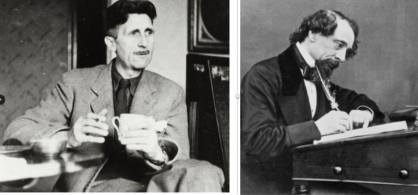 Let’s understand why. Our guide for this journey, like a Ghost of Christmas Past of English writers whose name we still recognize today, is George Orwell. In 1939, on the brink of World War II and after having fought in the Spanish Civil War (and having a near-death experience with Trotskyites, then settling down to a life in England with a rooster named Henry Ford and a poodle named Marx), George Orwell wrote a long essay about the most famous English novelist.